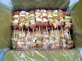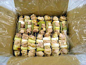 国産鶏 ももネギ串 3本入りパック (本数の調整は、ご希望により変更可能です、販売価要考慮願) 10パック以上より製造承ります。 |